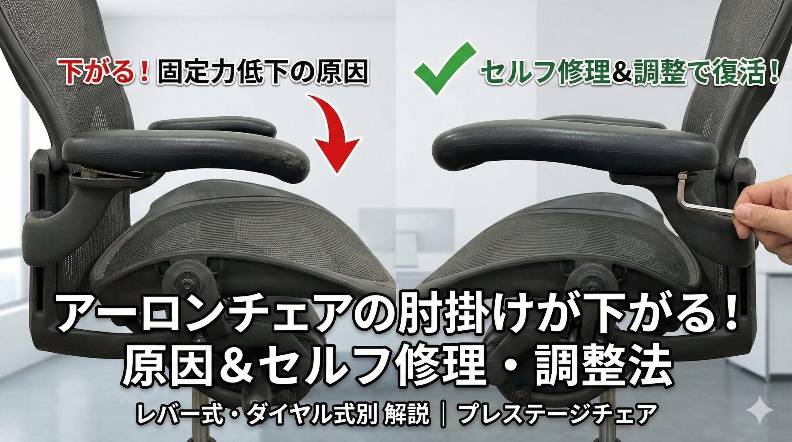 アーロンチェアの肘掛けが下がる!原因&セルフ修理・調整法
